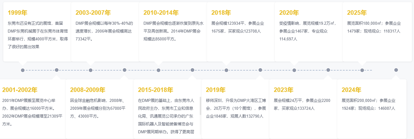 东莞国际模具、金属加工、塑胶及包装展(简称DMP展)为香港讯通展览公司打造的旗下规模最大、最具品牌知名度及行业影响力的展会。创办20多年来,依托珠三角强大的机械制造供应链生产基地,伴随着中国经济的高速发展及智能装备制造业转型升级,展会已发展成华南地区乃至亚太地区最具有影响力的工业类机械展会之一。展会面积、参展企业、海内外专业买家数量逐年增加,每年11月举办的DMP展,还同期举办多场高规格的论坛、研讨会、新品发布会等,成为行业交流、技术分享、新品展示的业界盛会之一。DMP展多次被东莞市人民政府评选认定为“十大会展项目”、“东莞市重点品牌展会”。