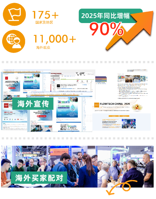 2025年,基于“海外买家精准邀约计划”,上海国际泵阀展达成国际观众人数同比增长90%成就,创同期水行业展会人数之最。今年,主办方将加深与Informa Markets的资源共享,充分挖掘日韩、东南亚、中东、欧美以及“一带一路”沿线国家等重点区域合作意向,预计可吸引11,000+海外采购商到场。